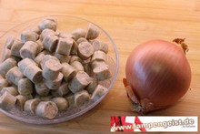 - Schält die Zwiebel und schneidet sie in kleine Würfel.