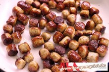 Mischt alles gleich gut durch. So kann der Qouinoa gleich zu "ziehen" anfangen! - In der gleichen Pfanne bratet ihr jetzt die Bratwürstchen-Stücke "goldbraun" an, oder etwas dunkler. ;-)