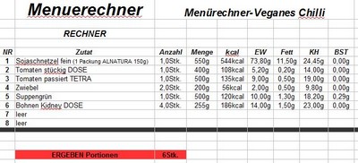 > Kopiert alle Zutaten, in die Liste des Rechners.