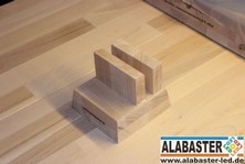 Die Materialien sind Buchenleimholz, Aluprofile und Plexiglas...
